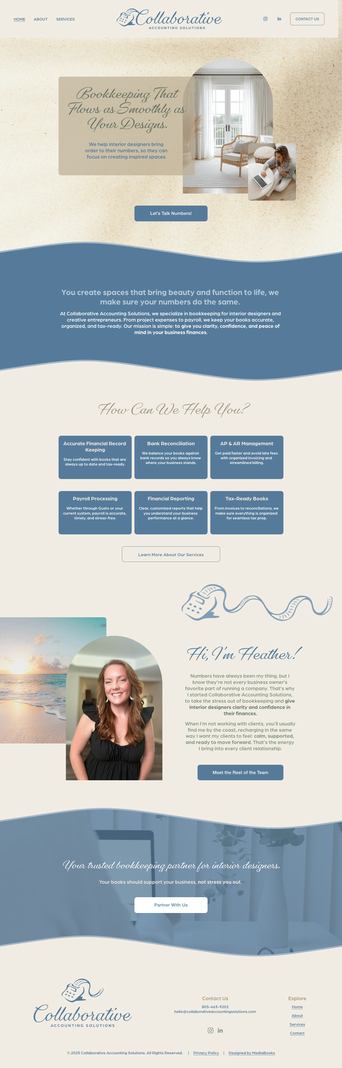 Collaborative Accounting Solutions helps interior designers and creative entrepreneurs take the stress out of bookkeeping. Founder Heather Booth wanted a website and brand that reflected both her professionalism and the creativity of her clients.